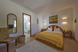 The Guest house, occupying 160m2 is divided into two separate units, each one with two bedrooms, a bathroom, a kitchen and terraces. Both have views to the swimming poor area. These flats are ideal for family and friends, or for rentals.